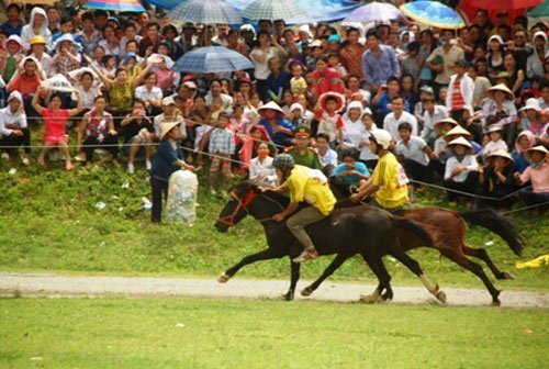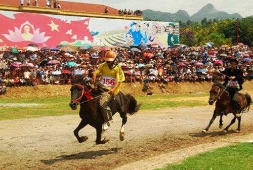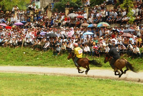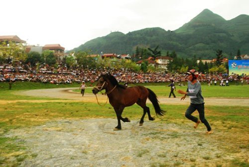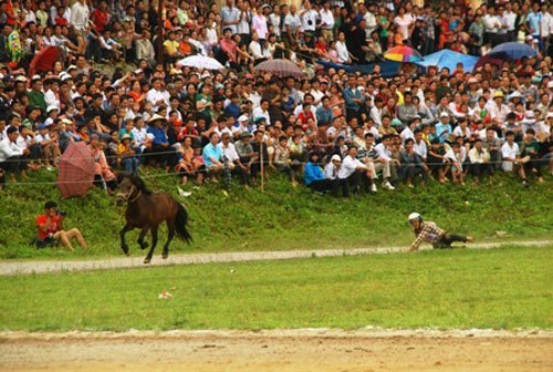Bùm! Pháo lệnh vừa vang lên, các “chiến mã” ngựa thồ đã dựng bờm, quất đuôi, tung vó phi vun vút, tung bụi trên đường đua trải xỉ than, vòng quanh sân vận động trung tâm thị trấn Bắc Hà, đông nghẹt người xem, dưới nắng hè khá nóng.