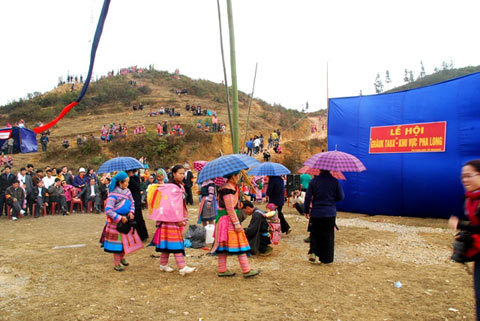 Hội gầu tào mùa xuân năm nay do ông Lý Chẩn Tờ, 76 tuổi, đứng ra làm chủ lễ. Hội diễn ra trên bãi đất bằng phẳng, nơi trước đây là sân Đồn biên phòng Pha Long. Thế đất cao, nhìn rộng ra bốn phía là núi non, làng bản, mây trời, có cảm giác bao la, khoáng đạt và tinh khiết lạ lùng.