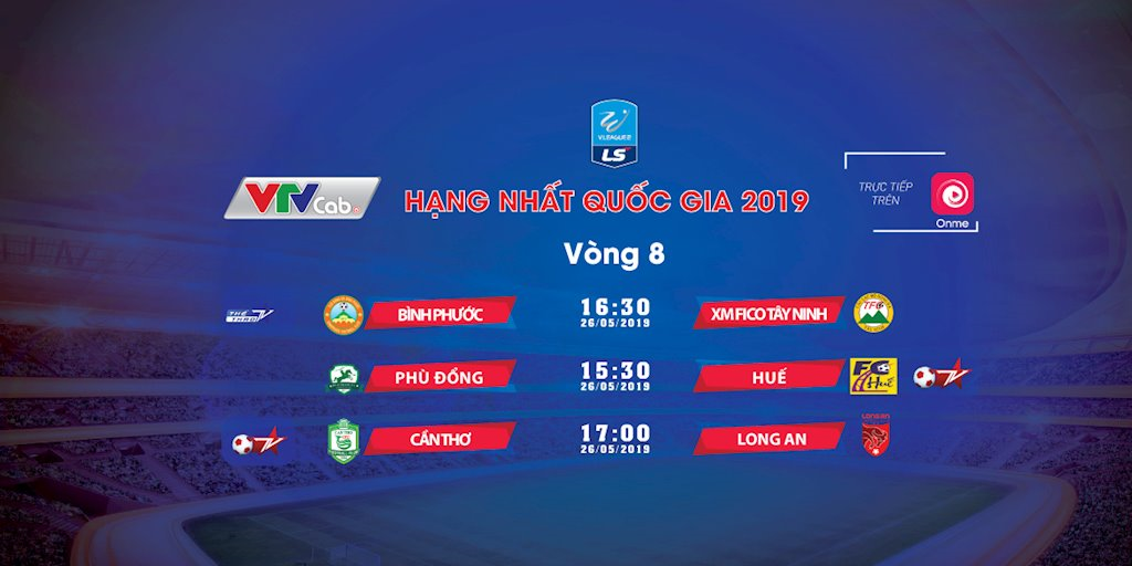 Vòng 8 giải hạng Nhất Quốc gia sẽ diễn ra vào cuối tuần này trong các ngày 25 và 26/5/2019 trực tiếp trên VTVcab, Onme, VTVcab ON.