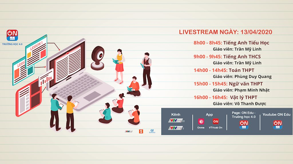 Lịch học cụ thể của chương trình “ON Edu - Trường học 4.0” tuần từ 13 -17/4 với các bài giảng bổ ích cho các học sinh như sau: