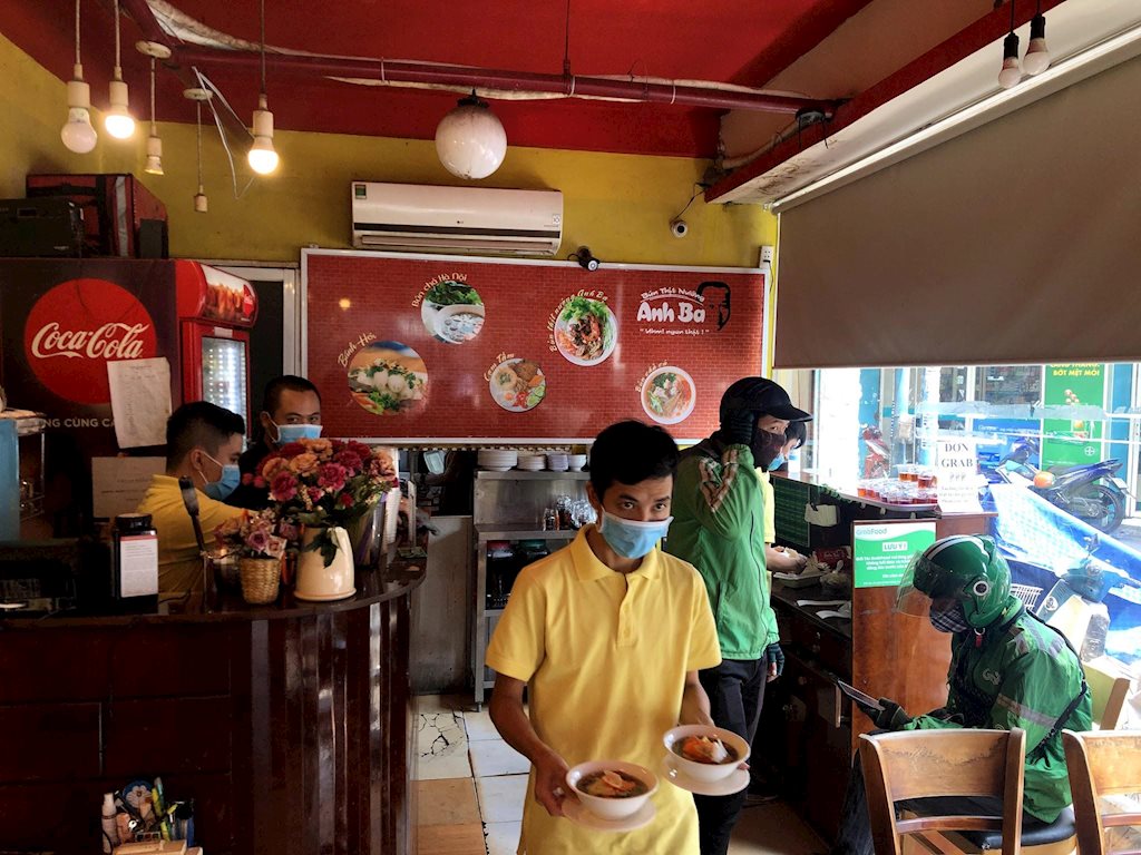 Chính vì sự thay đổi trong thói quen ăn uống của người dân, đặc biệt là tầng lớp học sinh - sinh viên mà cũng tại các quán ăn ở TPHCM, tuy khách thưa hẳn so với thường khi nhưng lượng shipper áo xanh, áo đỏ vẫn khá tấp nập. Nhân viên quán ăn đeo khẩu trang, một số quán cho nhân viên đeo cả găng tay khi giao món cho các shipper để đảm bảo vệ sinh an toàn.