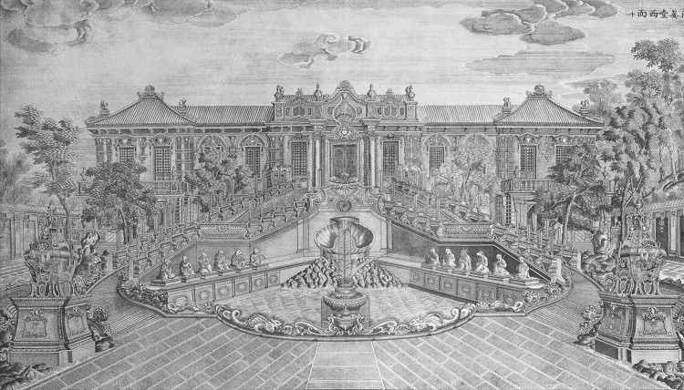 Ngoài các cung điện được xây theo kiến trúc Trung Quốc, Viên Minh Viên còn có khoảng 10 công trình mang hơi hướng kiến trúc phương Tây, tiêu biểu như tòa nhà Hải Yên Đường. Ở mặt trước tòa nhà này có một hồ nước nhỏ, xung quanh đặt tượng đá đầu đồng mô phỏng theo 12 con giáp.