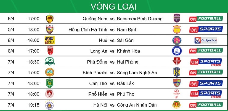 Lich thi đấu vòng loại Cúp Quốc gia 2022: