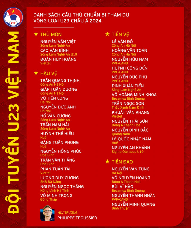 U23 Việt Nam tham dự vòng loại U23 châu Á 2024 sẽ được dẫn dắt bởi huấn luyện viên người Pháp HLV Troussier.