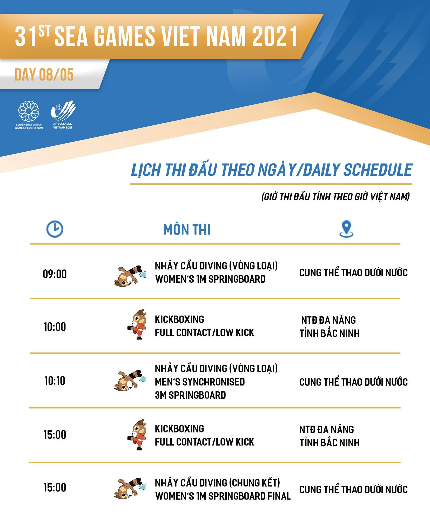 Lịch thi đấu các môn tại SEA Games 31 ngày 8/5/2022
