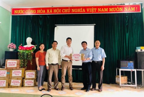 | Nhà báo Trần Bình Tám trao tặng những cuốn sách cho trường THPT Mèo Vạc |