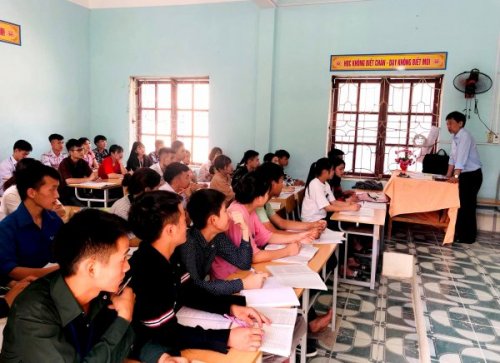 | Một tiết học của thày Trần Bình Tám về lòng yêu Tổ quốc, yêu tiếng Việt đã truyền cảm hứng đặc biệt cho các em học sinh Mèo Vạc. |