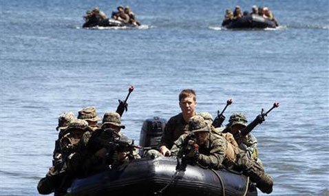 ![]() Quân đội Mỹ và Philippines tập trận trên Biển Đông. |