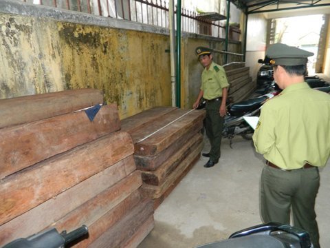 kiểm lâm phát hiện thêm 16 phác gỗ gõ, thuộc nhóm gỗ 2A, cất giấu tại một nhà