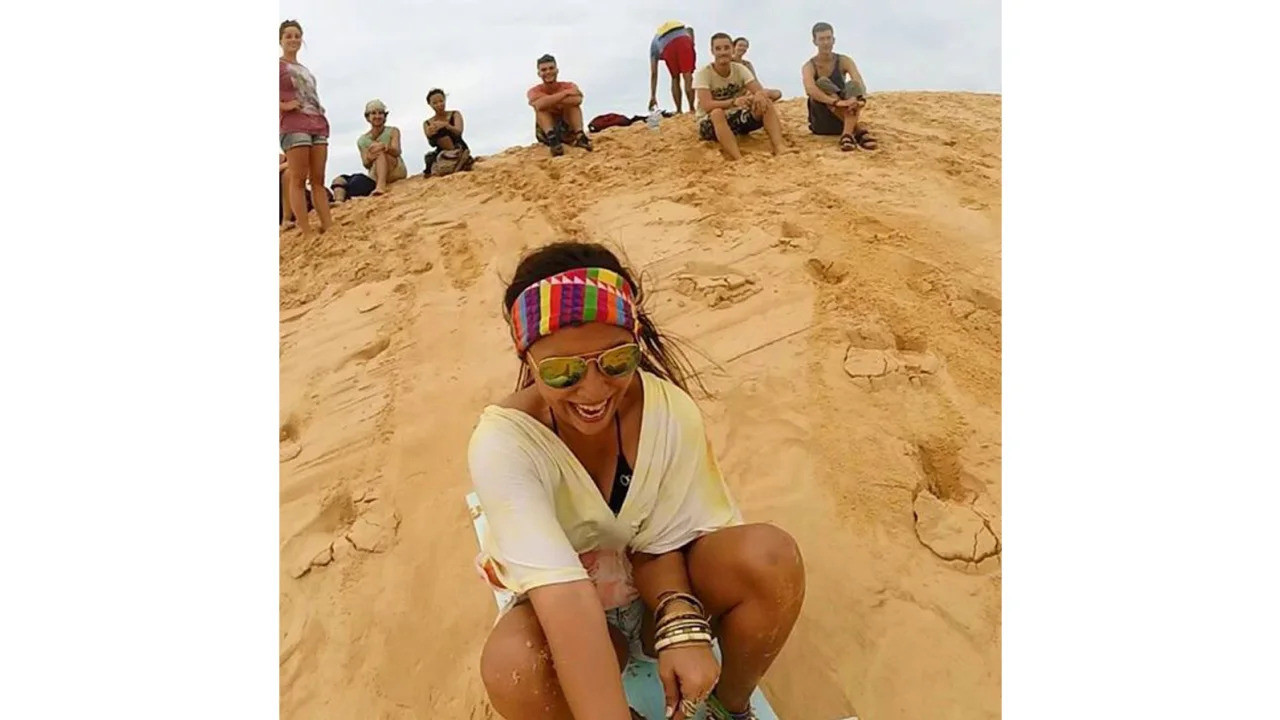 "Khi lăn xuống dốc, tôi đứng dậy loạng choạng rồi phủi cát", Tom nhớ lại. Sau đó anh tiến về phía cô để làm quen.