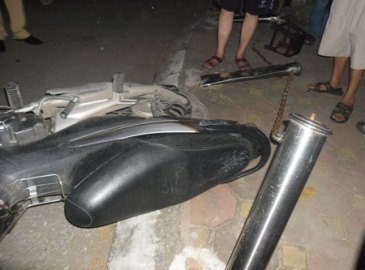 | Hàng rào và chiếc xe máy bị xe "điên" đâm nát (Nguồn: Lao động online) |
