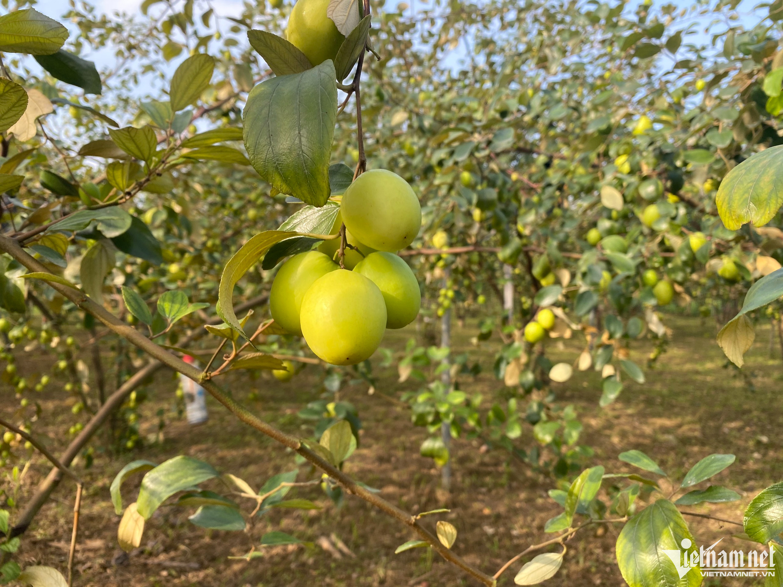 Giống táo anh Tính trồng gọi là đại táo, cây giống được anh nhập về từ tỉnh Nam Định với giá 20.000 đồng/cây. Sau khi trồng khoảng một năm táo cho lứa quả đầu tiên, trọng lượng trung bình từ 6-8 quả/kg.