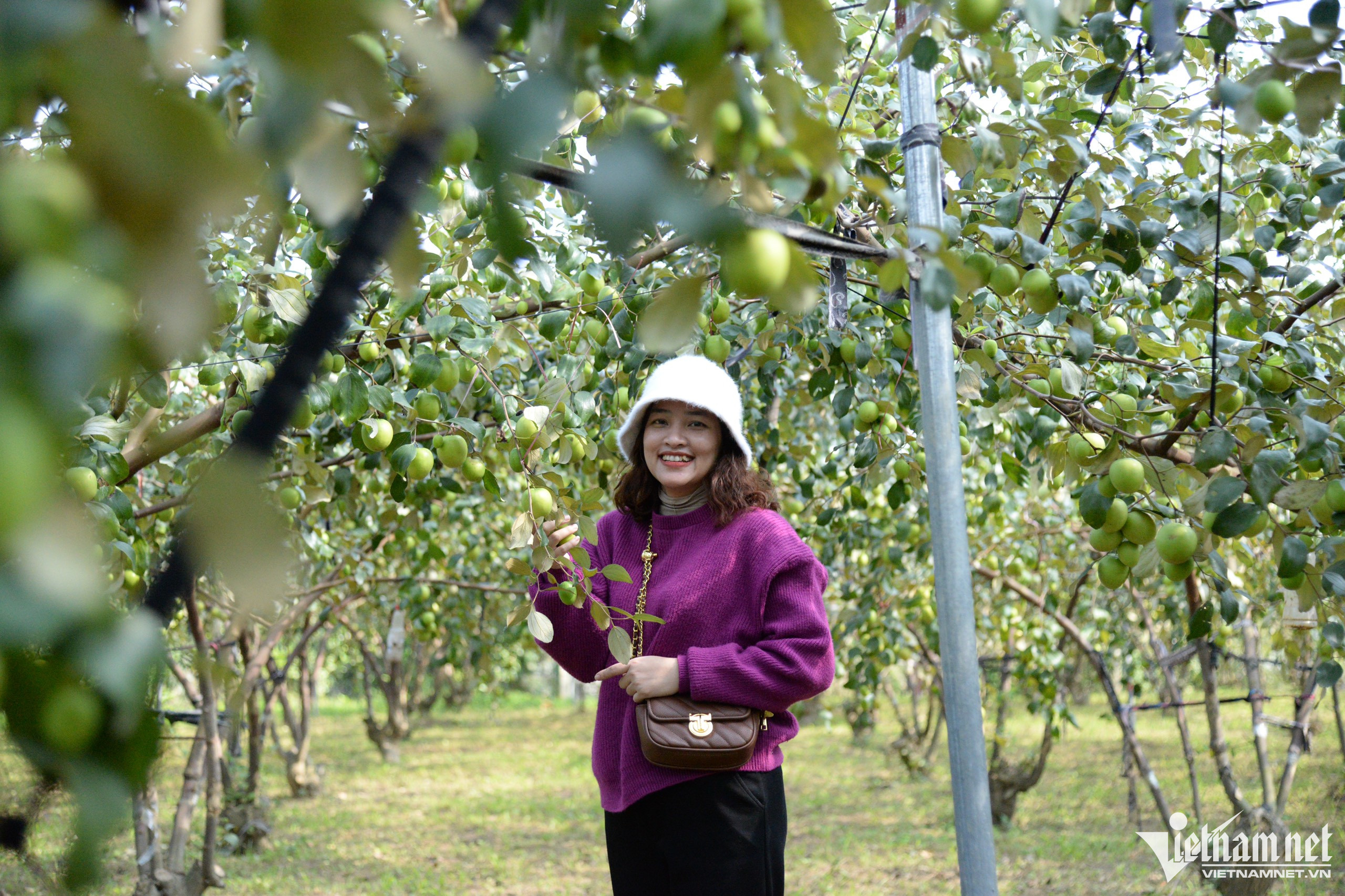 Hiện vườn táo của anh Tính được rất nhiều bạn trẻ tìm đến trải nghiệm, chụp ảnh và tham quan.
