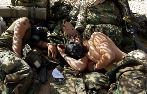 Một số cảnh lính chiến tranh thủ chợp mắt giữa chiến địa, vào bất cứ lúc nào và ở bất kỳ tư thế nào.