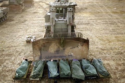 Lính Israel ngủ ở một khu vực đóng quân gần Kibbutz Mefalsim, ngay bên ngoài phía bắc Dải Gaza ngày 27/6/2006.