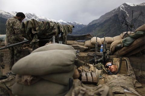 Lính Mỹ ngủ giữa công sự ở tỉnh Nuristan, Afghanistan, ngày 11/6/2012.