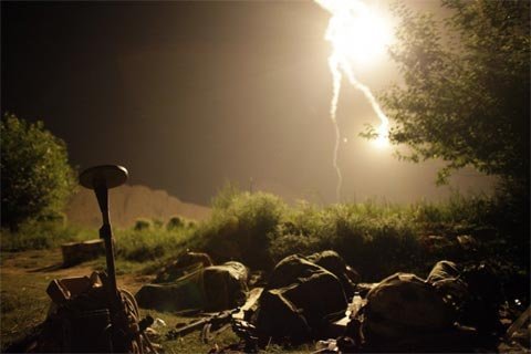 Các binh sĩ Canada ngủ giữa chớp pháo sáng trong một chiến dịch đặc biệt ở tỉnh Kandahar, Afhghanistan, ngày 18/5/2009.