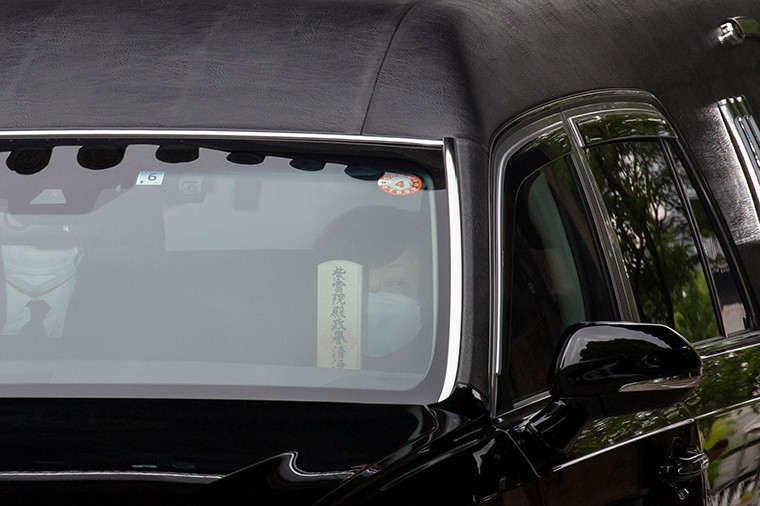 Có mặt trên hàng ghế đầu của xe chở linh cữu là bà Akie. Bà luôn giữ chặt bài vị của cố Thủ tướng trong tay. Đoàn xe lần lượt di chuyển dọc theo những con phố của Tokyo.