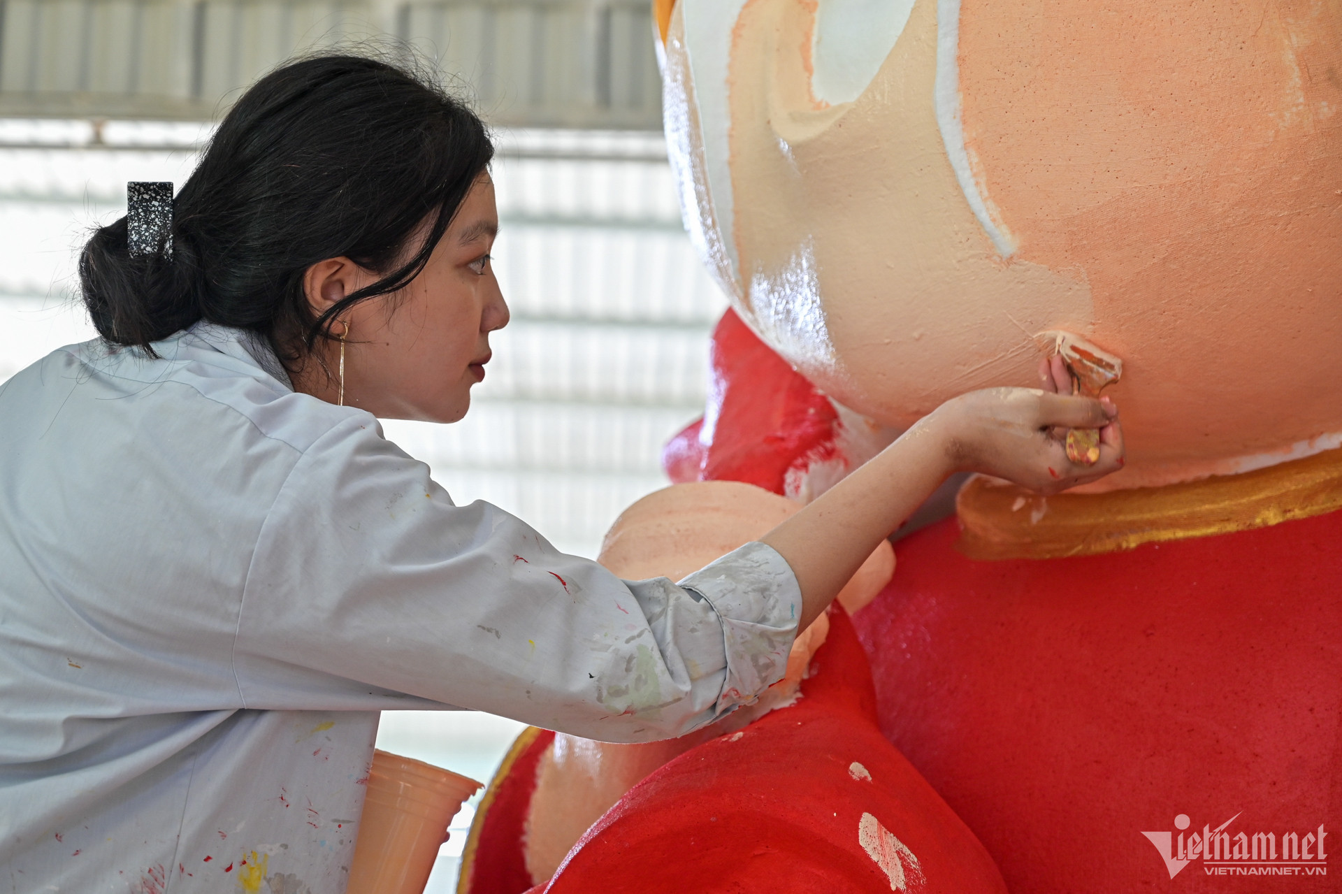 Cuối cùng là công đoạn tô, sơn màu, hoàn thiện. Ở khâu này, người thợ vẽ phải thực sự tỉ mỉ, khéo léo trong từng đường nét để tạo thần thái, biểu cảm cho linh vật. Tính thẩm mỹ của sản phẩm cũng được quyết định bởi công đoạn này.