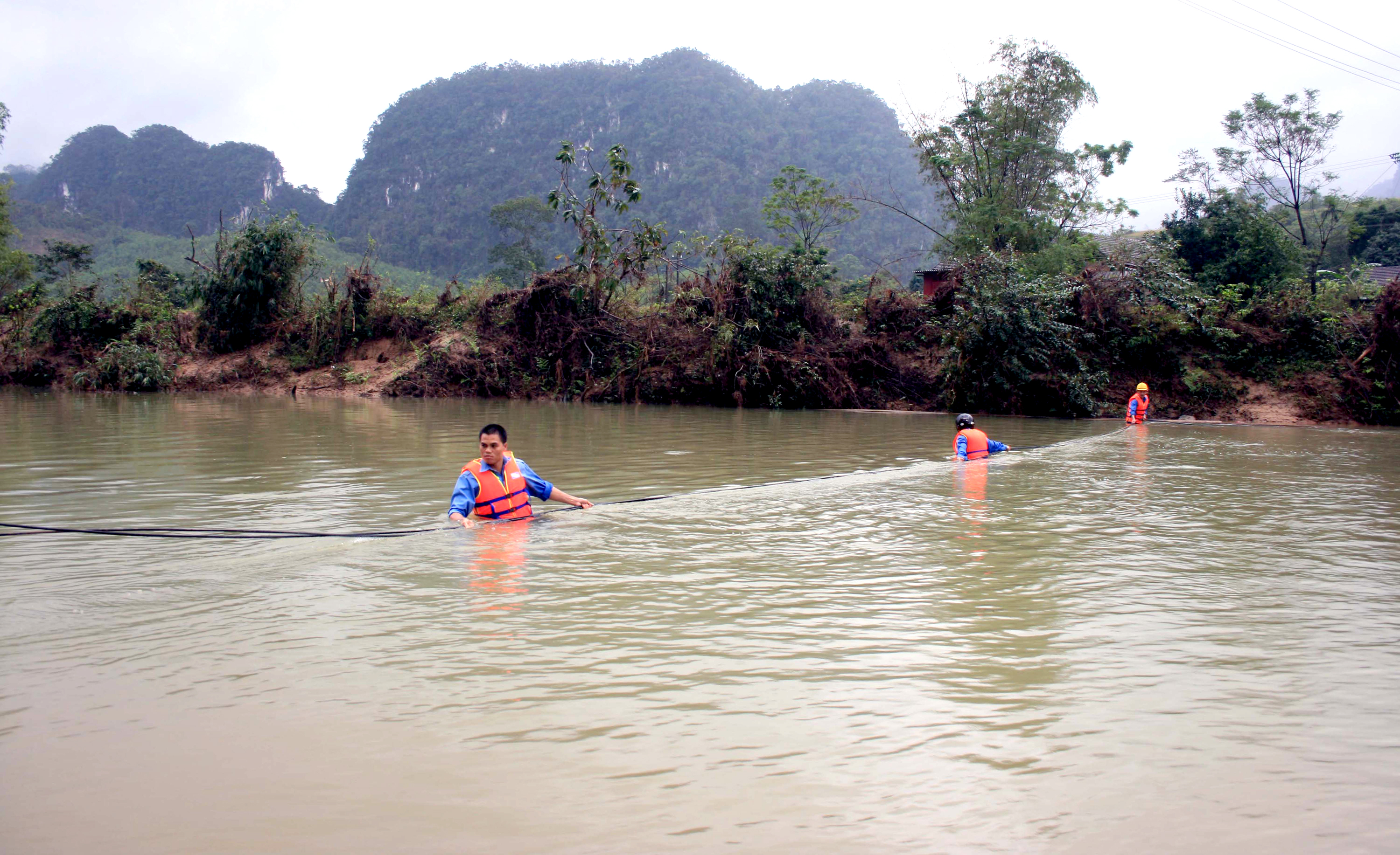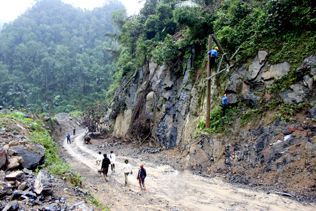 Quảng Bình: Băng lũ, vượt núi đá kéo cáp
