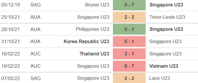 Phong độ của U23 Singapore: