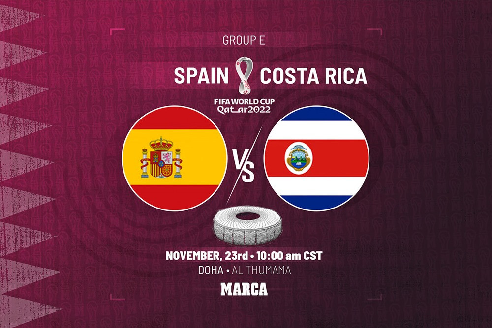 Trận đấu giữa Tây Ban Nha vs Costa Rica thuộc bảng E World Cup 2022 diễn ra vào lúc 23h00 ngày 23/11, trên sân vận động Al Thumama.