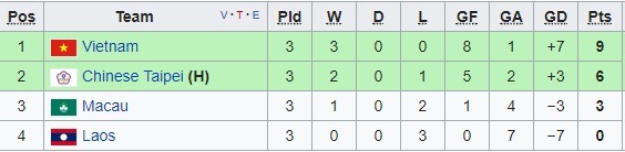 Theo điều lệ, nếu có 2 đội trở lên bằng điểm thì chỉ số đối đầu được sử dụng để xếp hạng. Vì vậy, U19 Việt Nam không những đã có vé tham dự VCK còn mà chắc chắn cán đích ở ngôi đầu bảng H, dù trận đấu giữa U19 Đài Bắc và U19 Macau kết thúc ngoài tỷ số hòa.