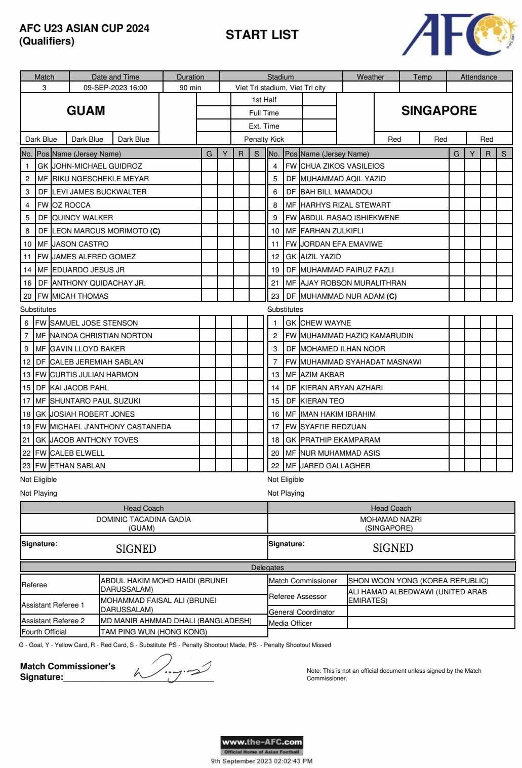 Cả U23 Singapore đều phải chịu thất bại nặng nề ở lượt trận ra quân. U23 Singapore thua U23 Yemen 3 bàn không gỡ, trong khi U23 Guam bị U23 Việt Nam 6 lần sút tung lưới.