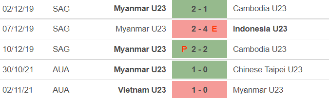 U23 Myanmar luôn vượt qua vòng bảng ở 3 kỳ SEA Games gần nhất. Trong đó, có hai lần giành huy chương (Bạc năm 2015; Đồng năm 2019).
