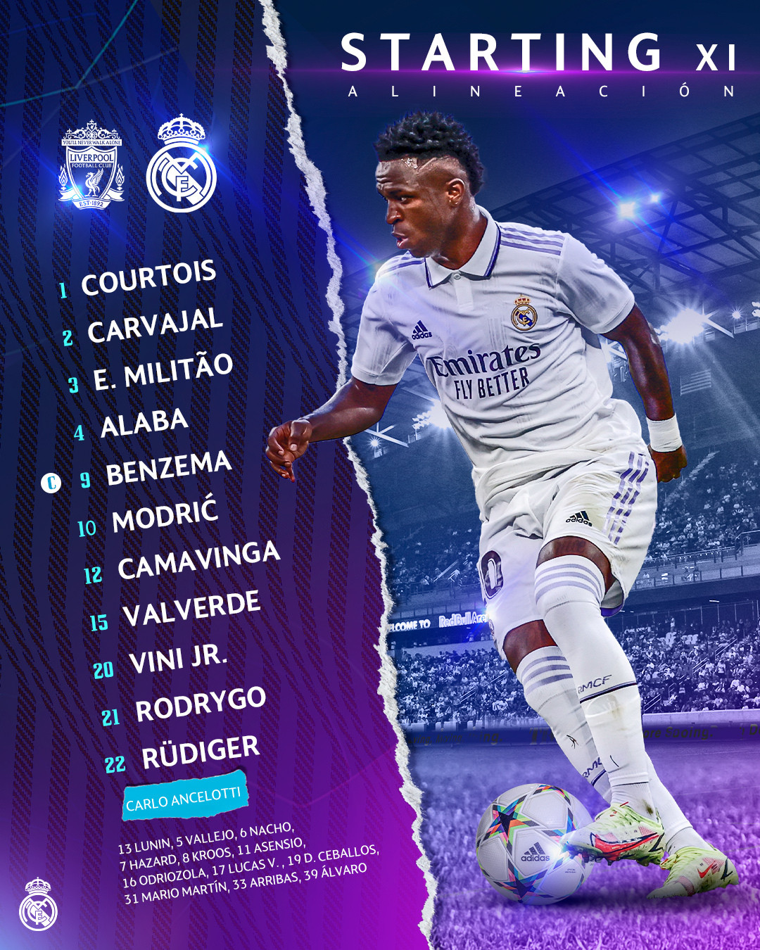 Real Madrid: Courtois; Carvajal, Militao, Rudiger, Alaba (Nacho 27'); Camavinga, Modric; Valverde, Rodrygo, Benzema, Vinicius Jr.