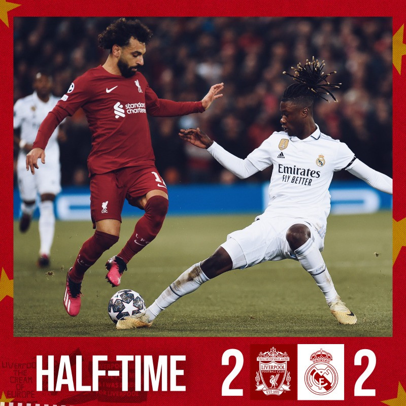 Bàn thắng (2-2, Vinicius): Sau đường chuyền về của Gomez, thủ môn Alisson phá bóng đập chân Vinicus bật ngược trở lại lưới, biếu không cho Real Madrid bàn thắng thứ hai.