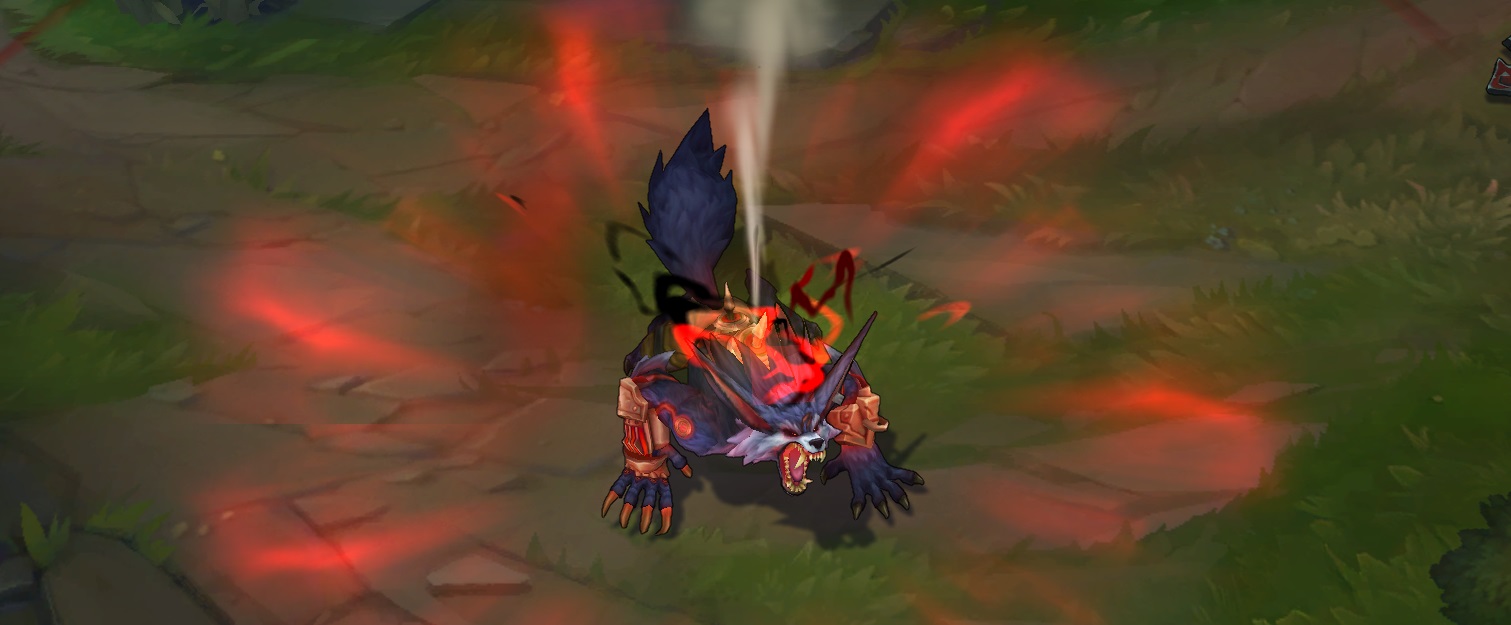 Warwick nhận 35/40/45/50/55% khả năng giảm sát thương trong vòng 2.5 giây. Khi kết thúc quá trình, hoặc tiếp tục tái kích hoạt, Warwick hú lên, gây hoảng sợ cho tất cả kẻ địch xung quanh trong vòng 1 giây.