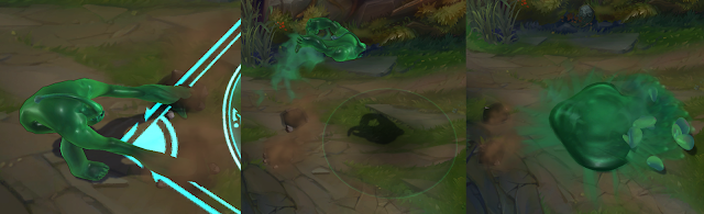 Kích hoạt lần đầu: Zac tan chảy thành một vũng lầy và vận sức, trở nên miễn nhiễm với hiệu ứng khống chế trong vòng 2.5 giây và làm chậm kẻ địch 30/40/50% đứng trên nó.