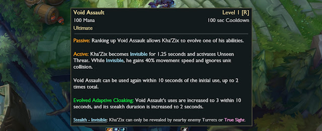 - (Hiệu ứng thay đổi) “Số lần sử dụng Đột Kích Hư Không tăng lên 3 lân trong vòng 10 giây, và thời gian tàng hình tăng lên 2 giây
