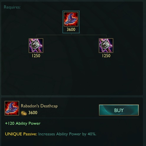 - Công thức mới: Bí Chương Thất Truyền + Súng Hextech + 850 Vàng.
