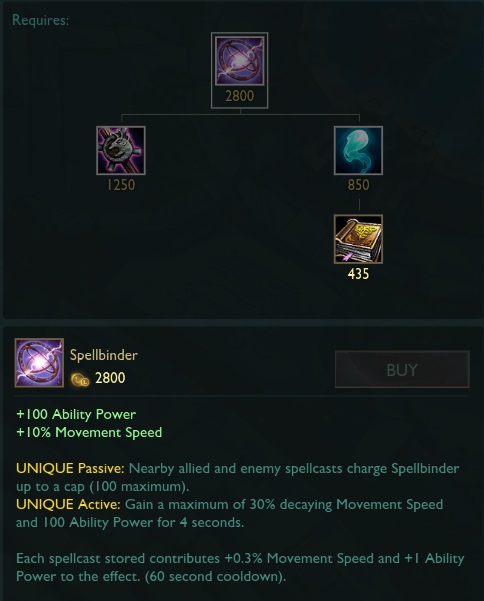 - Kích hoạt DUY NHẤT – Spellburst: Nhận thêm 30% tốc độ di chuyển giảm dần theo thời gian và 100 SMPT trong vòng 4 giây. Mỗi lần niệm phép tích trữ +0.3% tốc độ di chuyển và +1 SMPT vào hiệu ứng. (60 giây hồi lại)