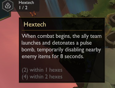 Khi bước vào giao tranh, đồng đội đem theo và kích nổ một trái bom, tạm thời vô hiệu hóa các trang bị của kẻ địch gần đó trong 8 giây (2 tướng: trong 1 hình lục giác/ 4 tướng: trong 2 hình lục giác).