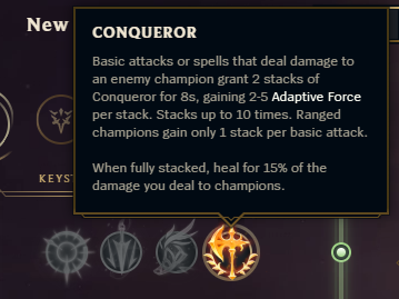 - [Hiệu ứng mới] Đòn đánh thường hoặc kỹ năng gây sát thương lên một tướng địch tăng 2 điểm cộng dồn Chinh Phục tồn tại trong 8 giây, nhận 2-5 Sát thương Thích ứng với mỗi cộng dồn. Cộng dồn tối đa lên tới 10 lần. Tướng đánh xa chỉ nhận 1 cộng dồn với mỗi đòn tấn công.