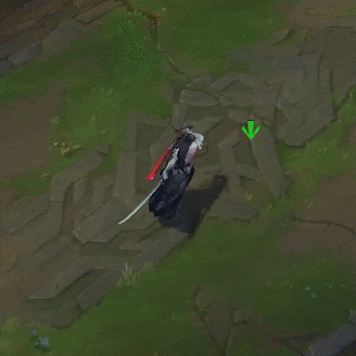 Nếu Yone đang trong giao tranh và không tấn công ở một vài thời điểm, dáng đi của anh ta sẽ khác đi - tương tự như Yasuo đút gươm vào chuôi.