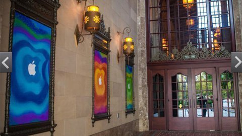 Theo lịch, sự kiện đặc biệt của Apple sẽ diễn ra đúng 12h đêm nay (giờ Việt Nam) tại Nhà hát California Theatre (San Jose). Công tác chuẩn bị từ phía Táo khuyết đang rất khẩn trương với hàng loạt panel đầy màu sắc in logo Quả táo trang hoàng khắp nhà hát.