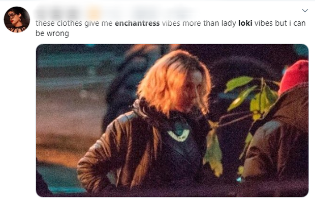 Còn đối với cô gái đang bị tình nghi là Enchantress, nữ diễn viên không hề mặc áo có logo giống với chúng bạn và hình ảnh chụp trộm được cũng là lúc cô đang sau cánh gà. Hơn nữa, việc trên bộ đồ có gắn miếng kim loại vàng nhỏ cũng khiến các mọt thêm phần tin tưởng rằng đây là Loki bản nữ thay vì Enchantress.