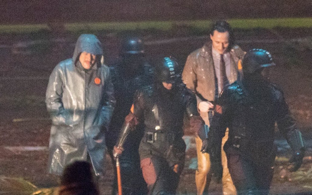 Những bức hình từ hậu trường Loki đã tiết lộ những cái nhìn đầu tiên về Tom Hiddleston. Nam tài tử bảnh bao trong bộ vest giữa một đội quân mặc áo giáp hùng hậu, ai nấy đều mang theo dùi cui. Để ý kỹ sẽ thấy, những biểu tượng trên áo của đội quân này đều trùng khớp với áo của Tom Hiddleston.
