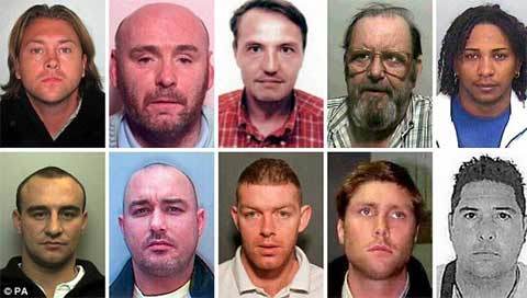 trên bao gồm các nghi phạm giết người, xâm hại tình dục trẻ em, bắt cóc, cướp