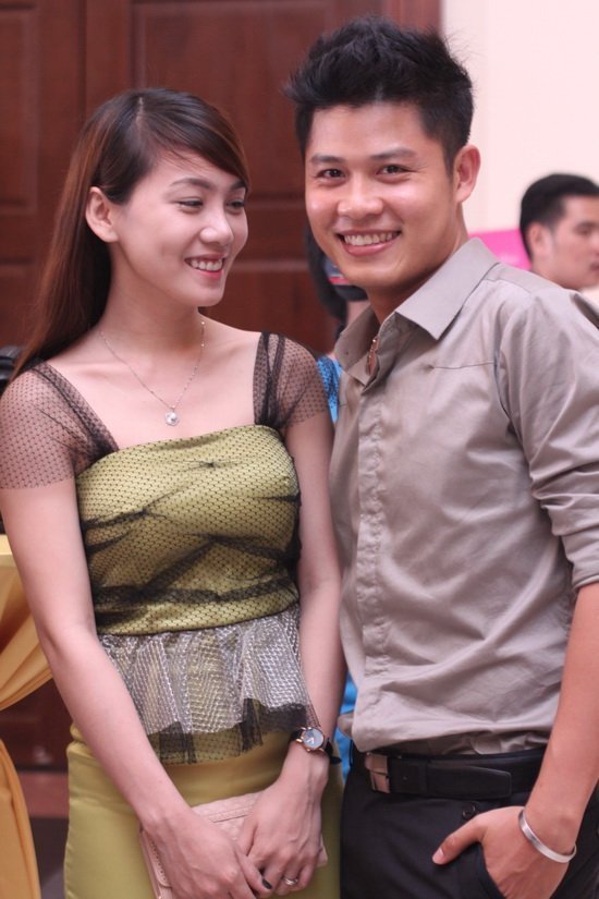 Vốn không phải là người trong giới showbiz và thường xuyên tiệc tùng, bạn gái của Nguyễn Văn Chung tỏ ra khá ngượng ngùng trước rừng máy ảnh. Khi được yêu cầu chụp hình, cô chỉ biết nhìn người yêu và cười ngượng.