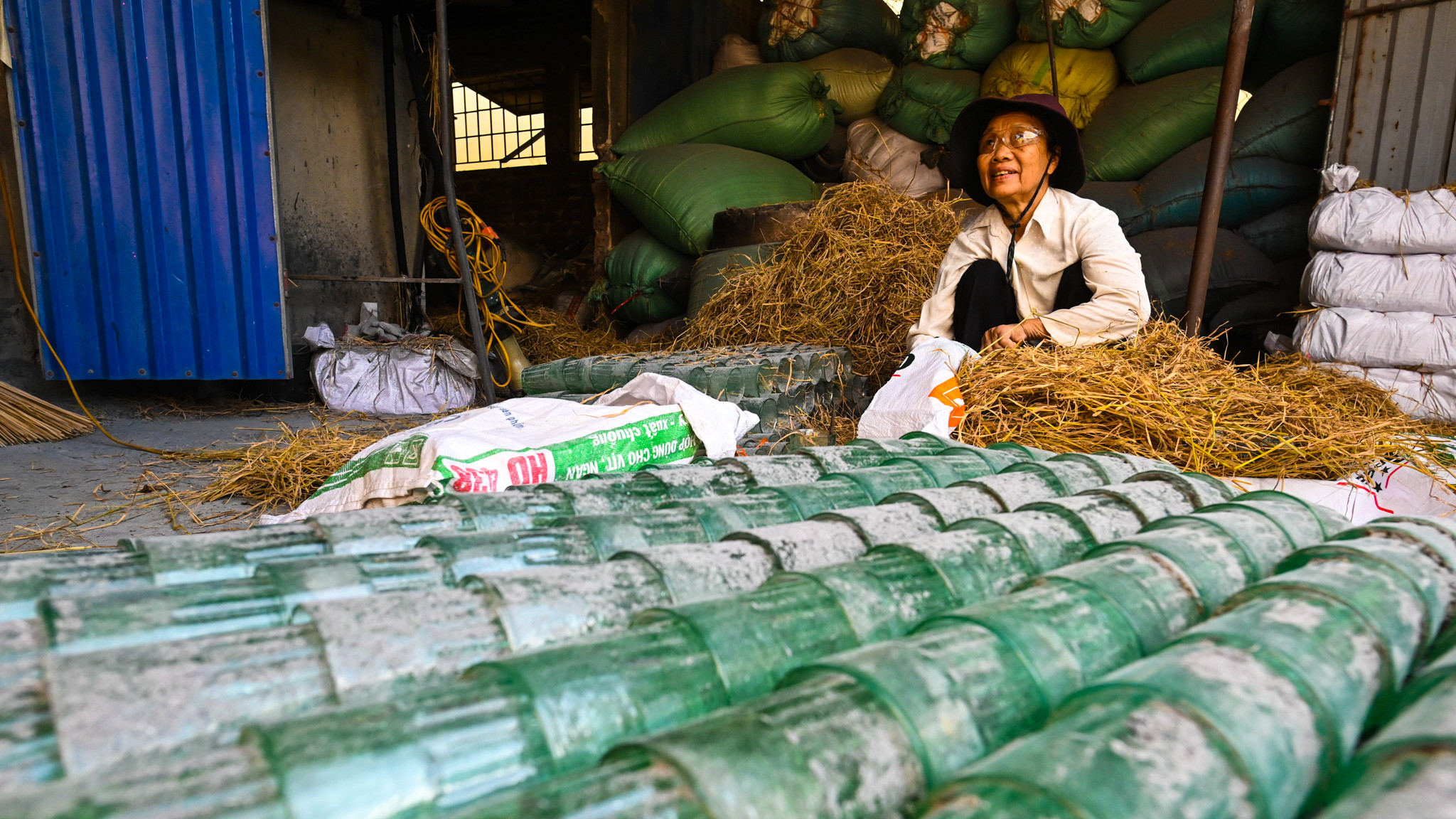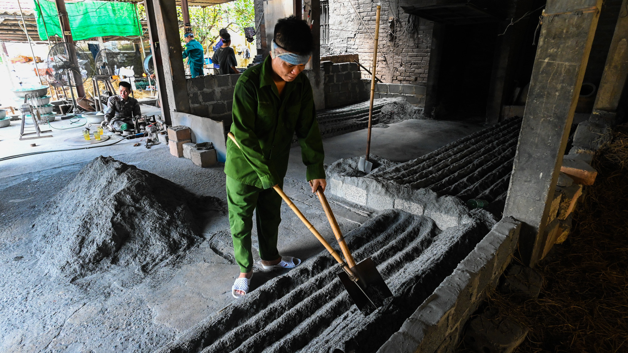 Cạnh khu vực lò là các dãy tro được trải sẵn sau khi lấy từ rơm rạ vừa đốt để ủ giúp cốc từ từ hạ nhiệt.