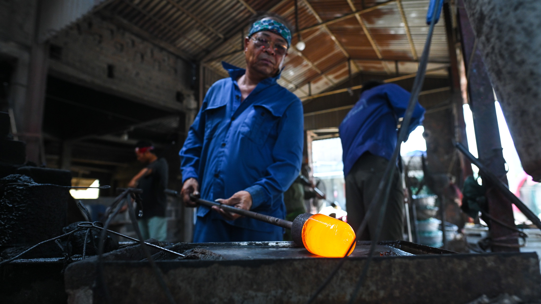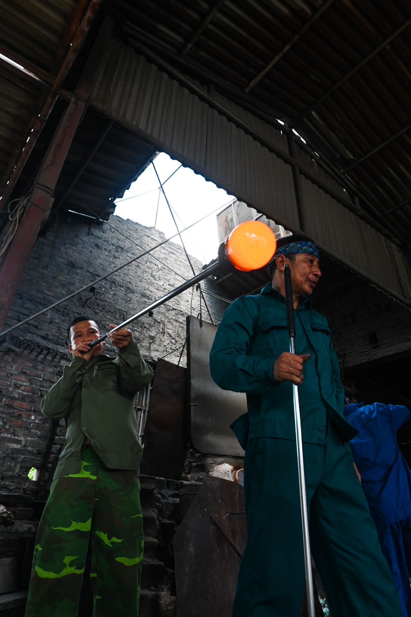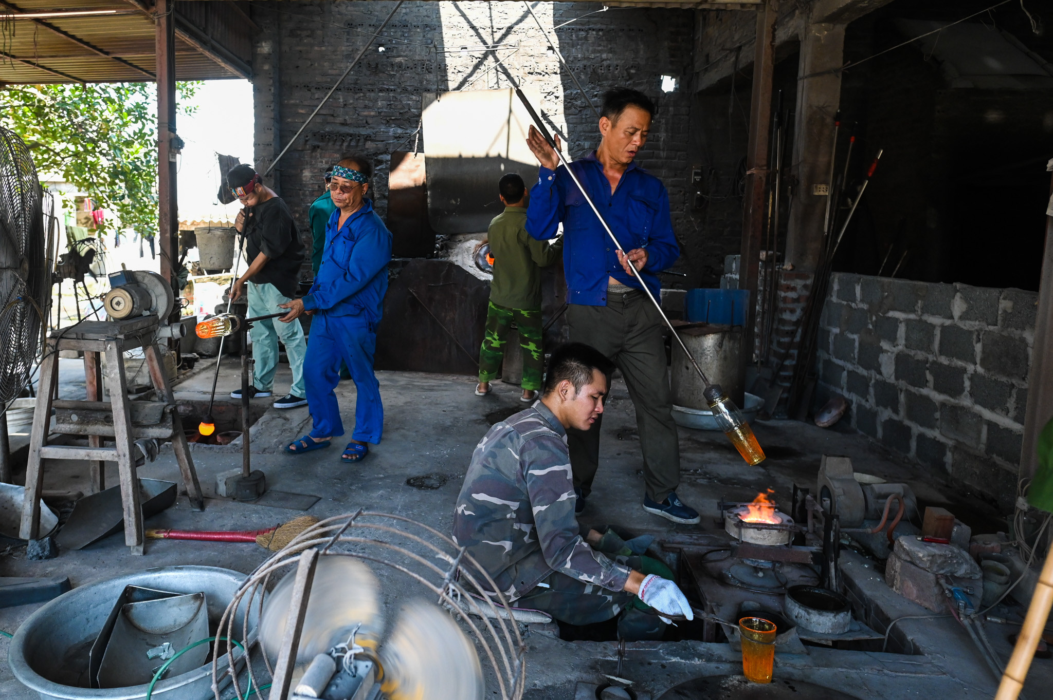 Các lò thủy tinh thủ công tại thôn Xối Trì thường phục vụ đơn hàng bán buôn từ tỉnh xa với số lượng hàng nghìn sản phẩm mỗi ngày, giá thành 7.000 đồng/chiếc.