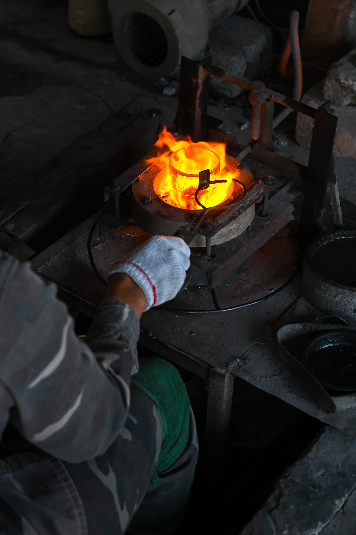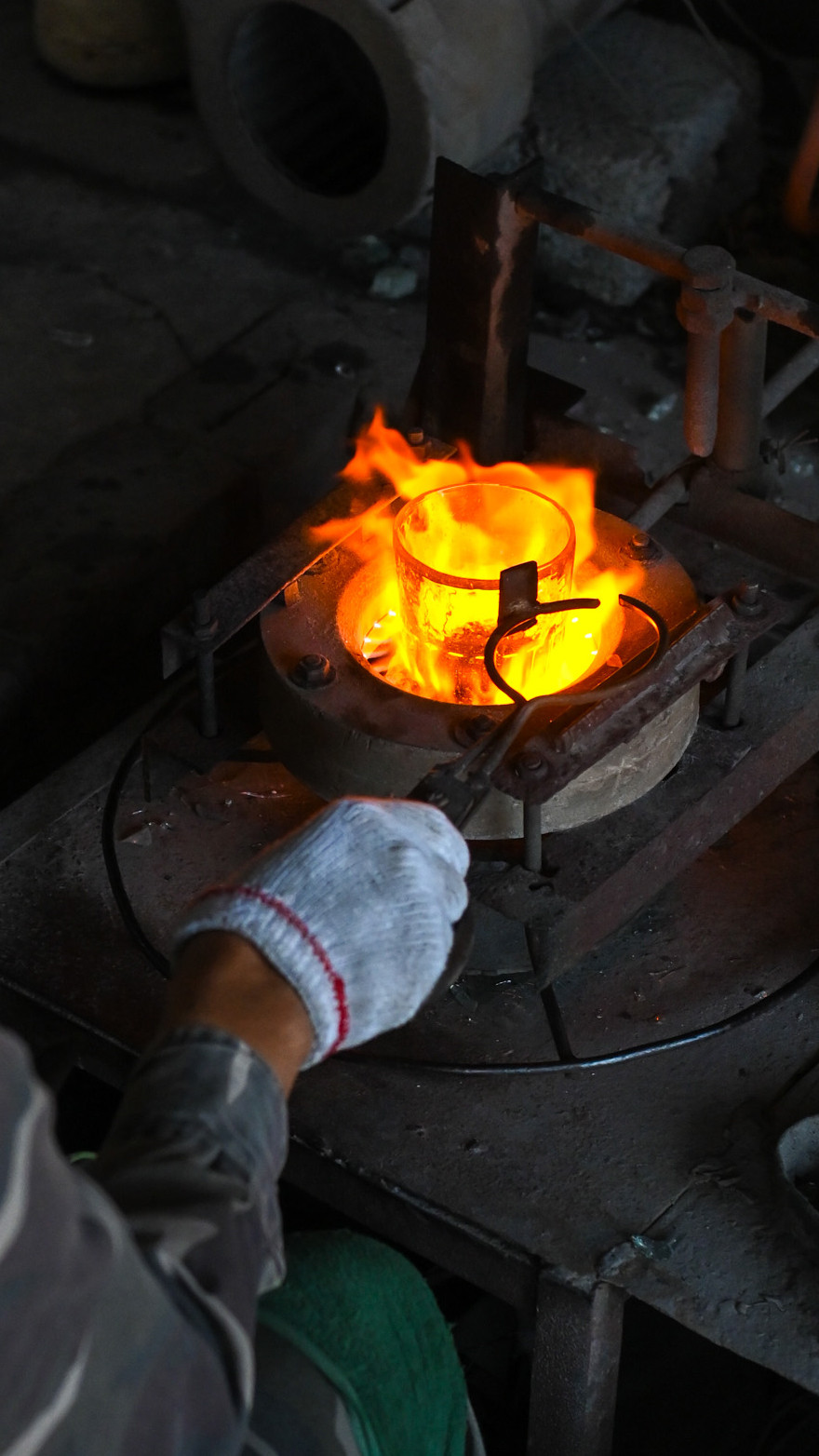 Thủy tinh được đổ trực tiếp vào lò. Trong thời gian luyện, than đá liên tục được đưa vào và giữ ở nhiệt độ khoảng 1.800 độ C để đảm bảo độ nóng chảy, đủ chất lượng.