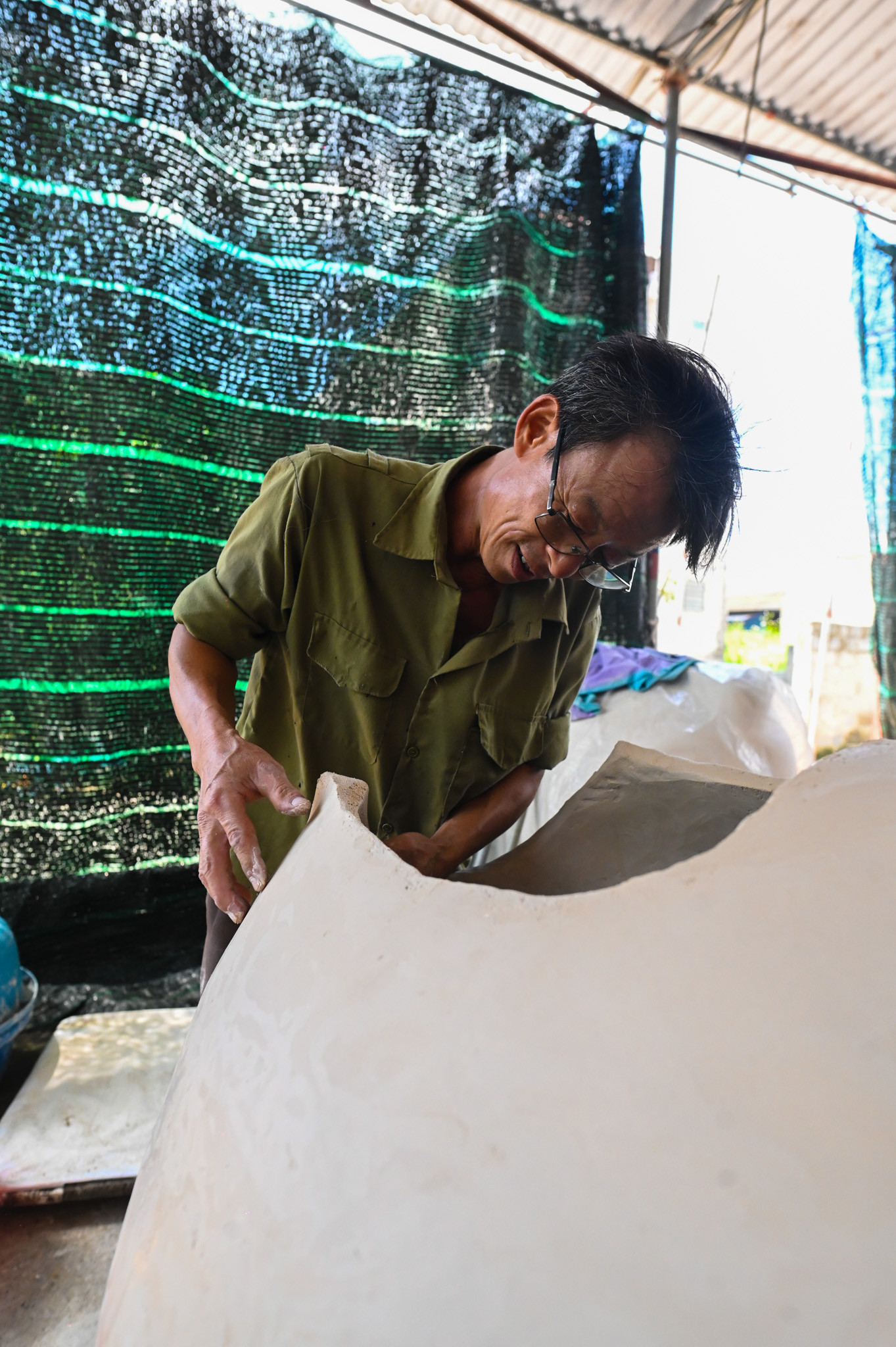 Việc cắt mép cốc được thực hiện một cách cẩn thận bằng chiếc bếp ga chuyên dụng và duy trì ở nhiệt độ nhất định. Đến công đoạn này, thành phẩm đã được hoàn thiện tới 90%.