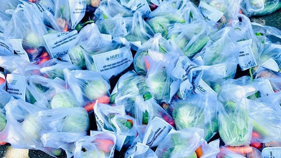Trường ĐH Công nghiệp Thực phẩm TP.HCM cũng huy động hơn 7 tấn lương thực, thực phẩm hỗ trợ sinh viên gặp khó khăn, trong này có 3,5 tấn gạo, hơn 3 tấn rau củ các loại, 200 kg trứng gà, 250 thùng mì, 100 thùng cháo ăn liền.