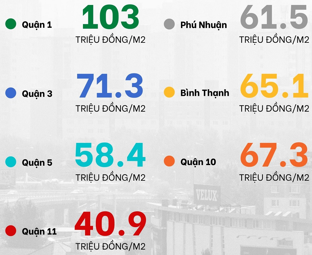 Về diễn biến giá bán căn hộ tại các quận thuộc khu vực trung tâm TP.HCM, quận 11 là quận duy nhất ghi nhận xu hướng giảm giá trong quý II/2022 với mức giảm 3 triệu đồng/m2.